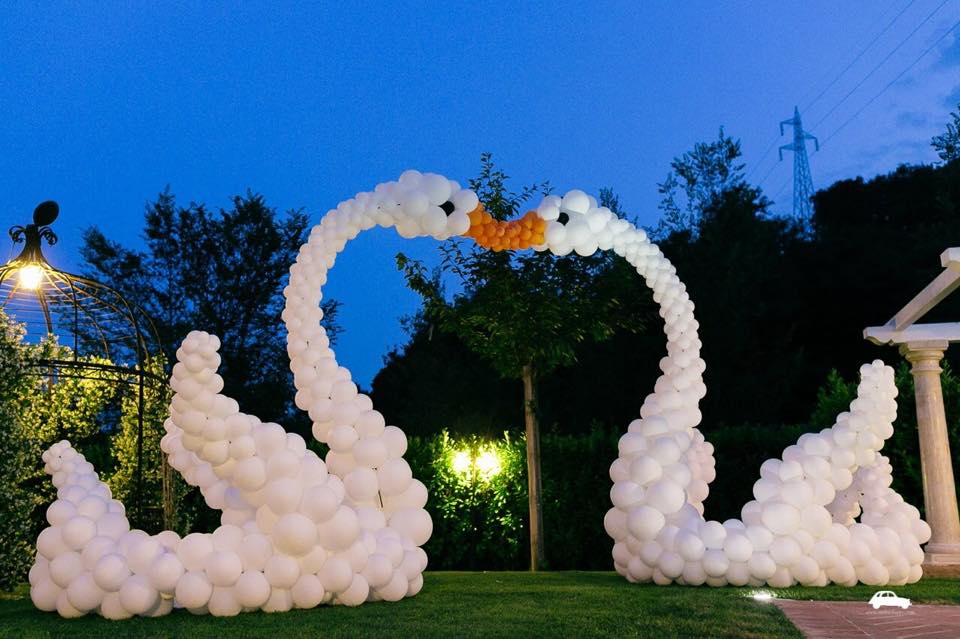 Siamo professionisti nell’allestimento scenografico e grazie alla ballon art allestiamo anche la vostra location con archi, colonne, fiori e cigni giganti!